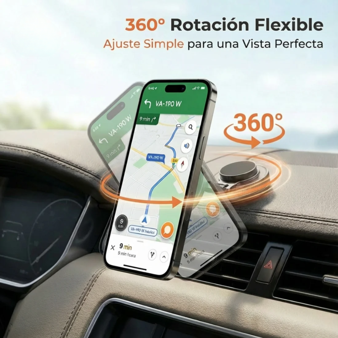 ✨ La Solución Mágica: Este soporte magnetico Premium con giro 360° es justo lo que necesitas para transformar tu dia a dia, manejar con seguridad, tener tu celular siempre visible y olvidarte de los soportes que no funcionan.